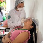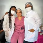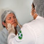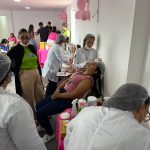 Durante a ação, foram realizadas limpezas de pele e orientações sobre saúde e autoestima, reforçando a importância da prevenção e do diagnóstico precoce do câncer de mama.
