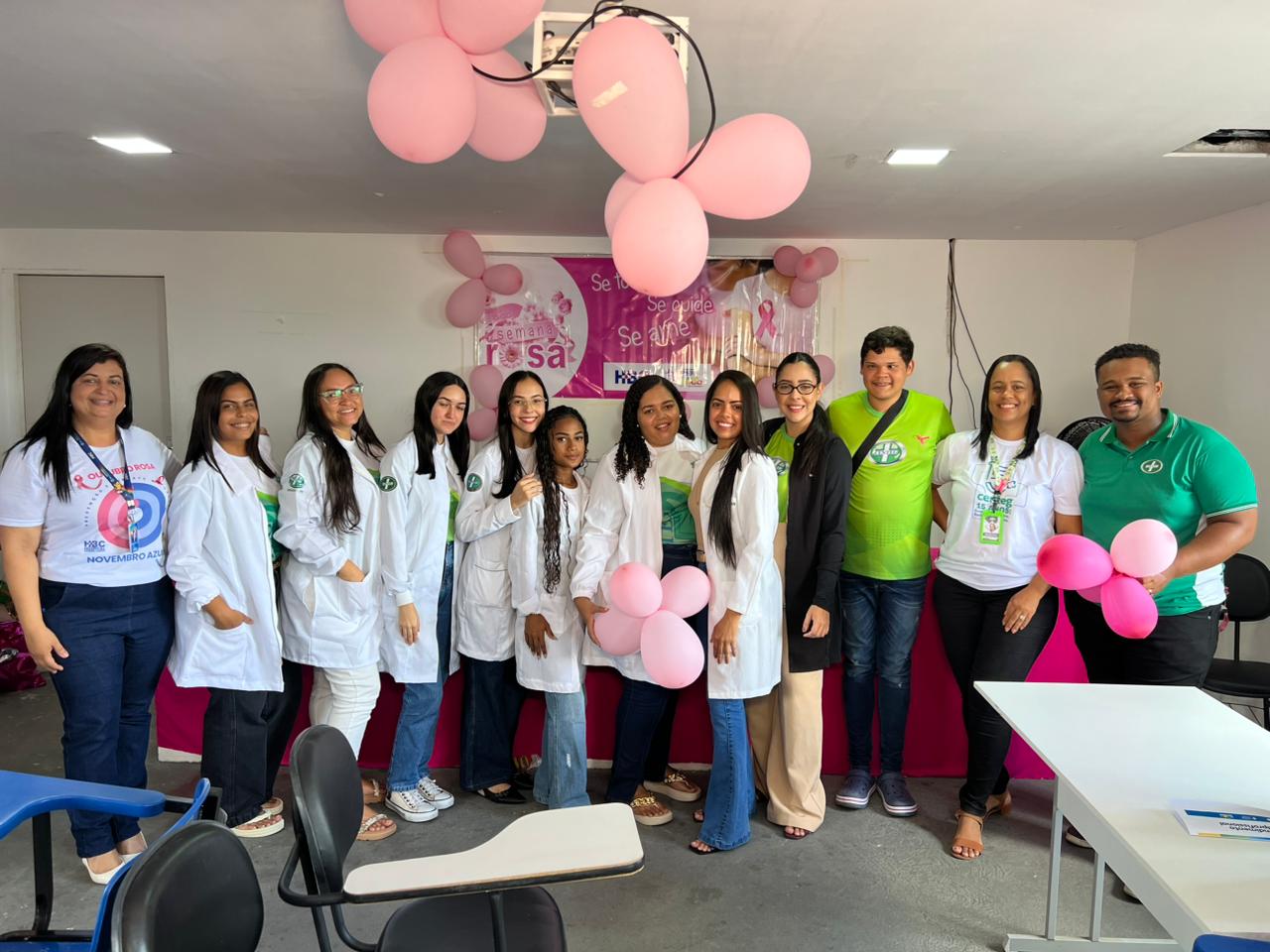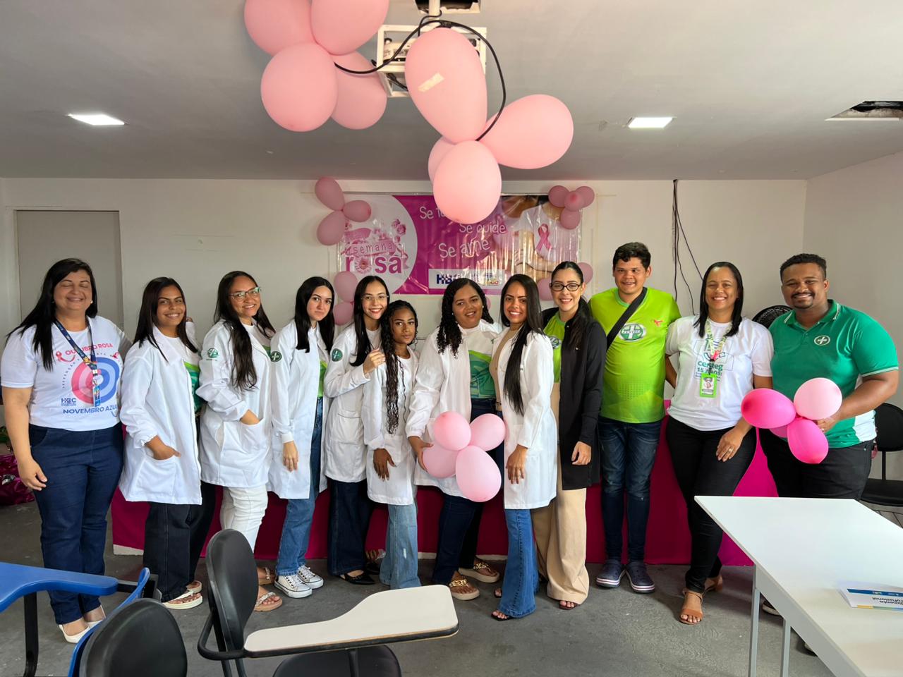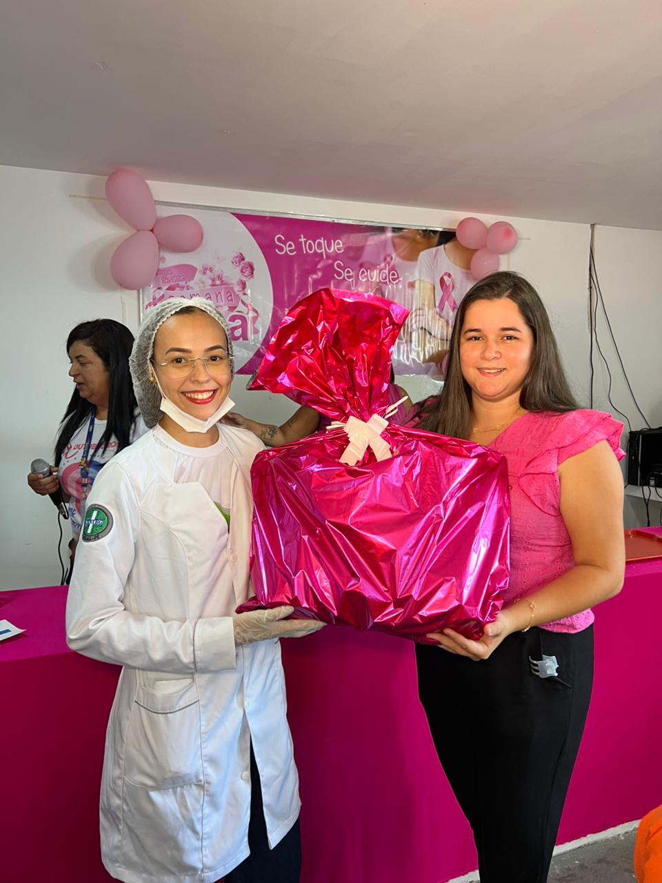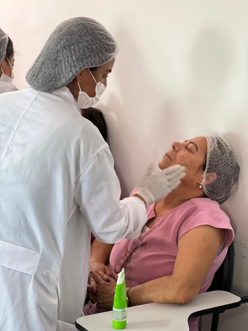 Durante a ação, foram realizadas limpezas de pele e orientações sobre saúde e autoestima, reforçando a importância da prevenção e do diagnóstico precoce do câncer de mama.