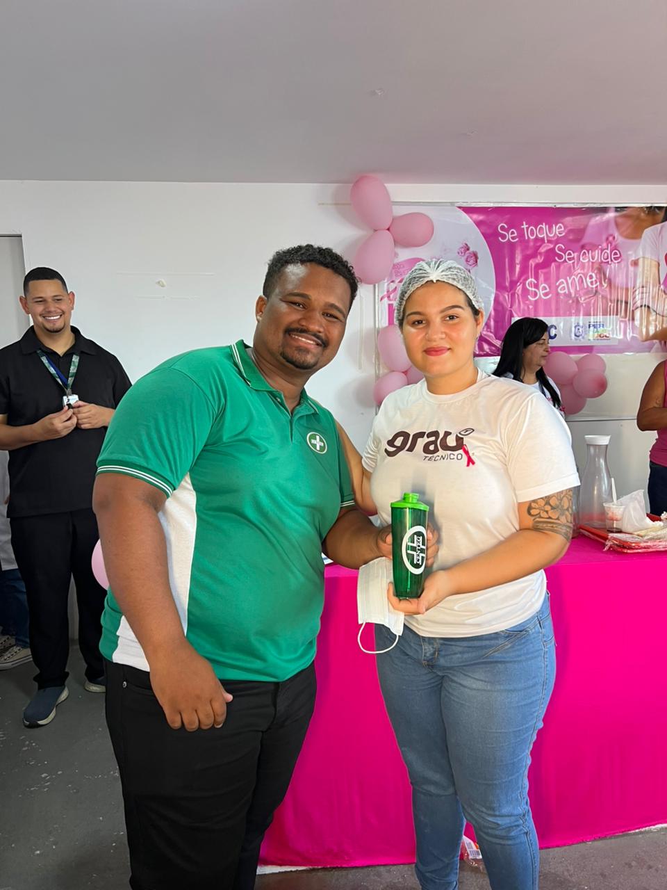 O CENTEG participou de uma importante ação em alusão ao Outubro Rosa, realizada no Hospital Belarmino Correia, em Goiana. A atividade contou com a participação dos alunos e professores do curso técnico em Estética, que ofereceram momentos de cuidado e bem-estar para as colaboradoras da instituição.